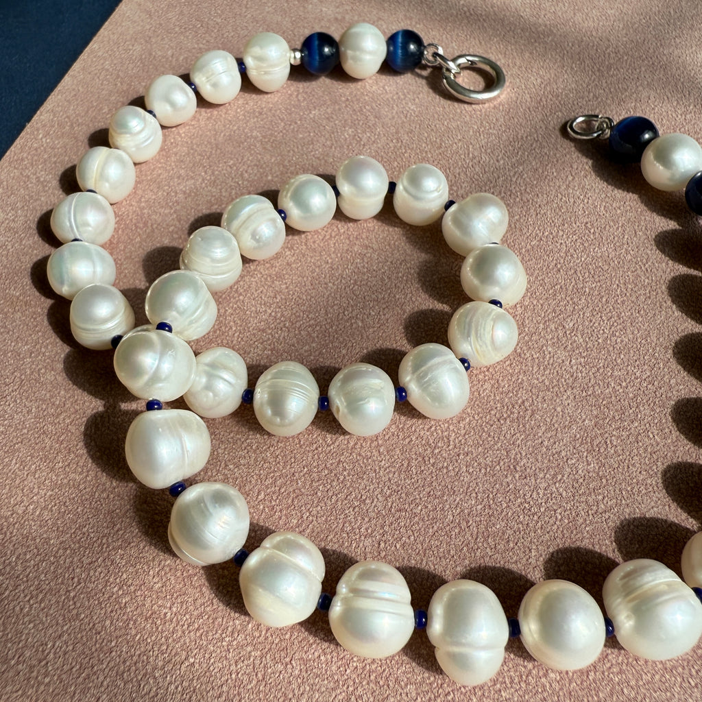 NEW! Pearl Indigo : Baroque Freshwater Pearls and tiger's eye