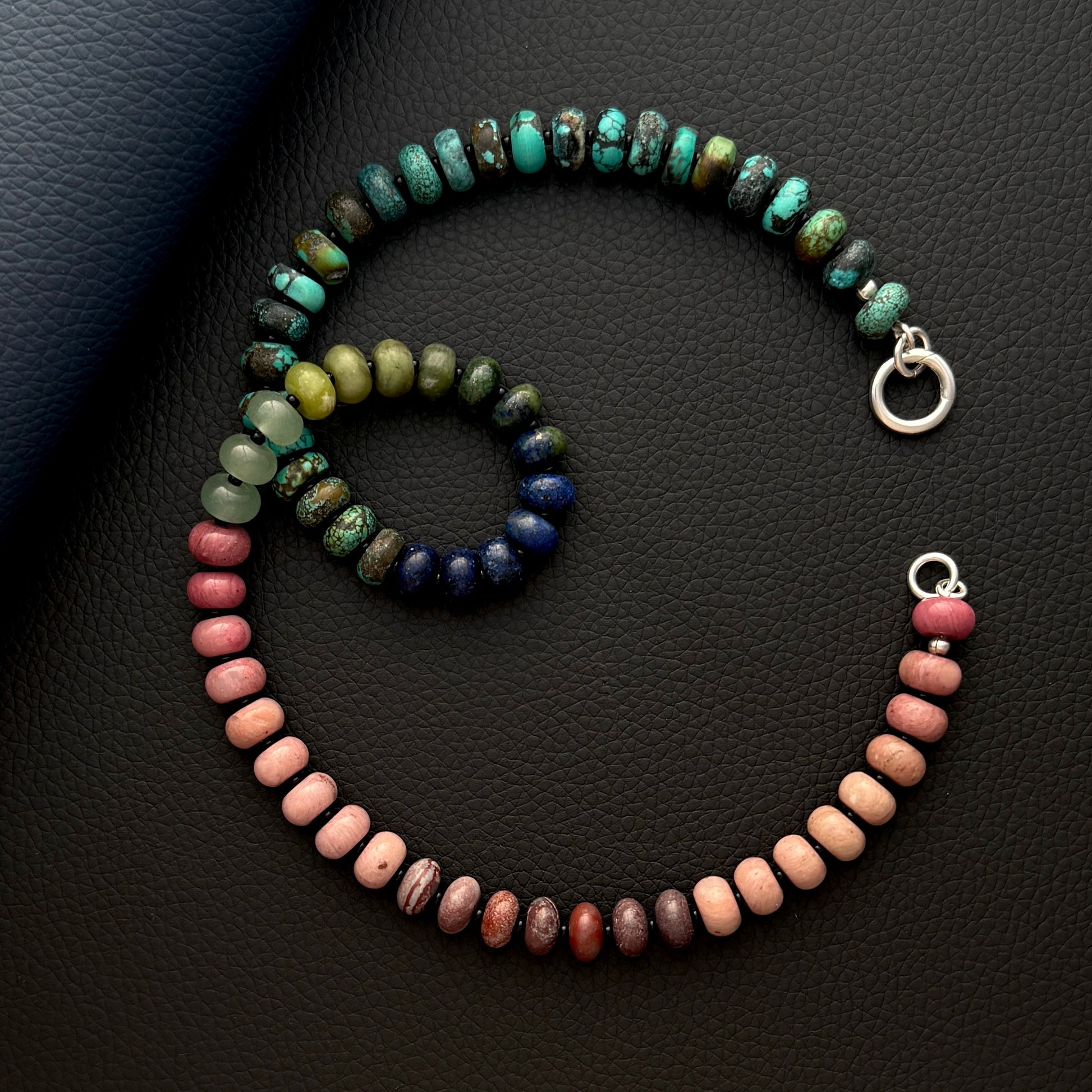 Night Mood: Turquoise, Lapis, Rhodonite, Jade, and Aventurine - Natural Gemstone Beaded Necklace